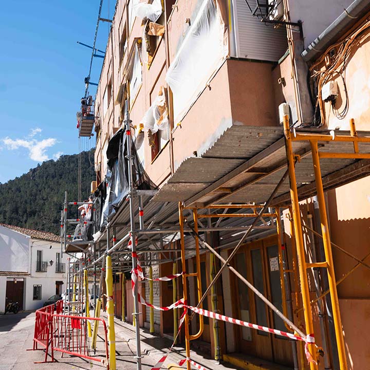 Disponemos de andamios certificados y marquesinas resistentes para proteger tanto a trabajadores como a peatones.